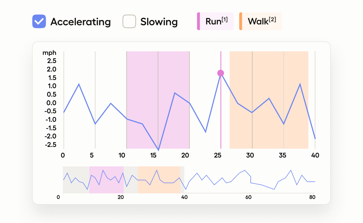 The TimeSeriesLabels control tag lets annotators classify specific regions of the time series graph as specific activities: